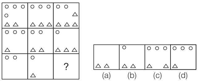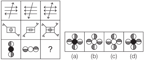 a part of figure is missing. Find out from the given (a), (b), (c) and (d), that can replace the ‘?’